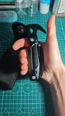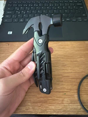 Com a Ferramenta Multifuncional de Bolso, estarás pronto para qualquer desafio. Um design compacto, resistente e equipado com funções chave como martelo, alicate, faca, chave de fendas, serra e mais… Tudo num único dispositivo que cabe no teu bolso! 🎒